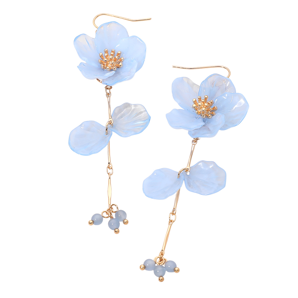 Resin Petal Floral Long Drop Earrings Resin Petal Floral Long Drop Earrings