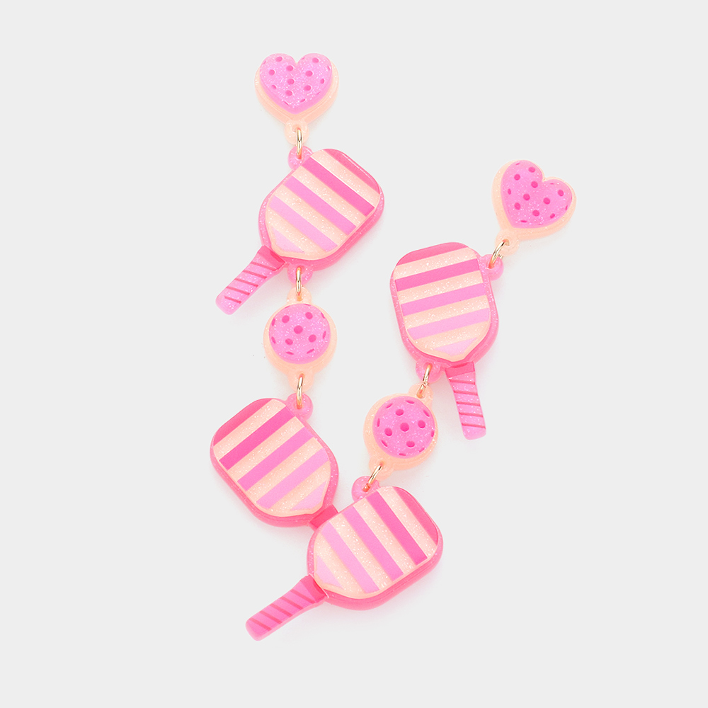 Resin Pickleball Racket Ball Link Dropdown Earrings