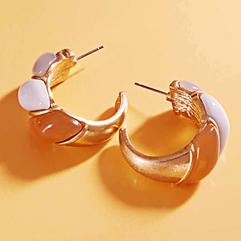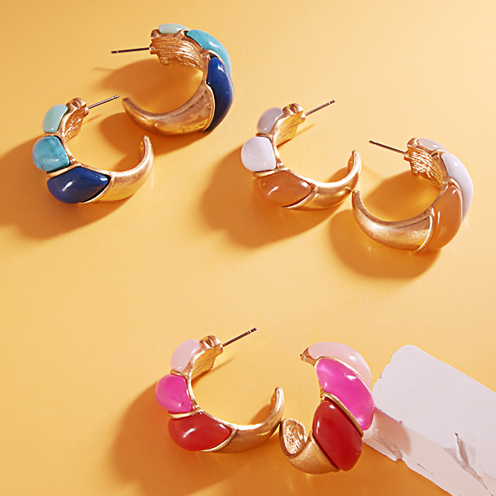 Details • Size : 1.1" X 1.25" X 0.6" • Titanium Post Back • Elevate your look with these bold chunky gold hoop earrings featuring glossy white enamel inlays. Perfect for making a statement, these earrings blend modern style with vintage flair. Ideal for both casual and dressy occasions, they’re your go-to accessory. • Lead and Nickel Compliant • Hypoallergenic