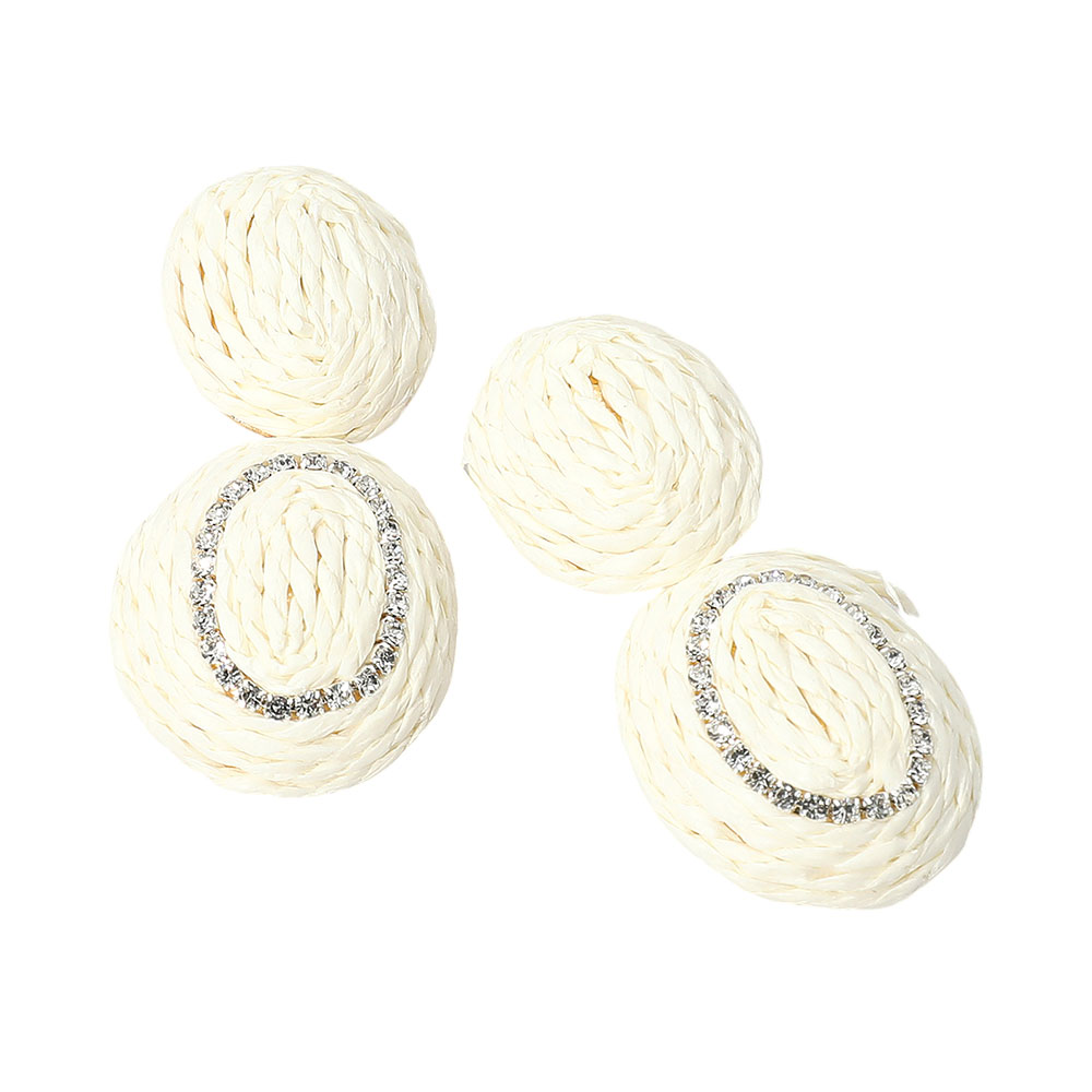 • Make a statement with these woven oval drop earrings featuring sparkling rhinestone detailing. Perfect for adding a touch of texture and shine to any outfit, they’re lightweight and stylish—ideal for casual wear, vacations, or unique gifts with a handcrafted flair.
