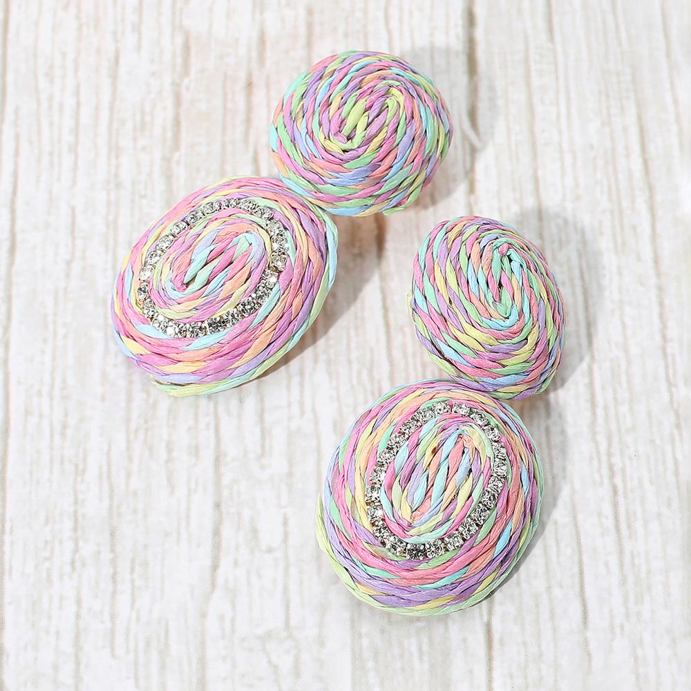 • Make a statement with these woven oval drop earrings featuring sparkling rhinestone detailing. Perfect for adding a touch of texture and shine to any outfit, they’re lightweight and stylish—ideal for casual wear, vacations, or unique gifts with a handcrafted flair.