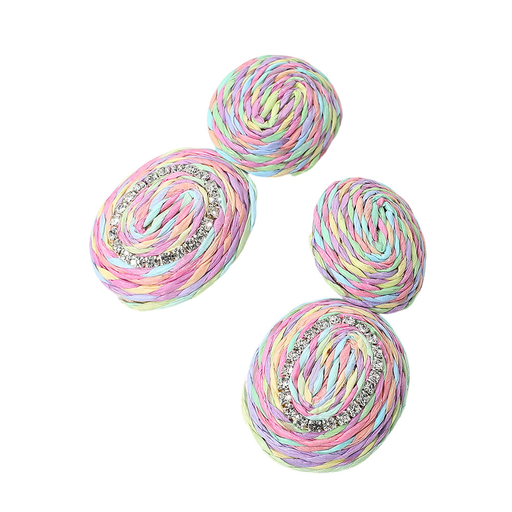 Rhinestone Accent Raffia Wrapped Oval Dangle Earrings Rhinestone Accent Raffia Wrapped Oval Dangle Earrings Rhinestone Accent Raffia Wrapped Oval Dangle Earrings