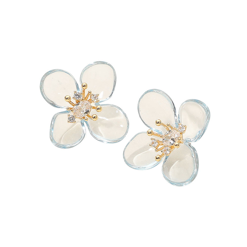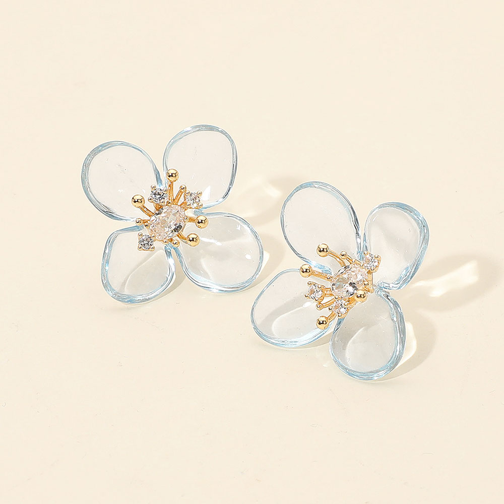 Rhinestone Accent Transparent Resin Petal Flower Earrings