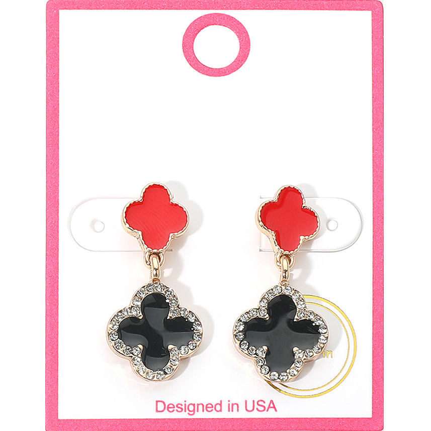 • Elegant drop earrings featuring a double clover design with rhinestone accents for subtle sparkle. Lightweight and versatile, these earrings add a chic finishing touch to both casual and dressy outfits.