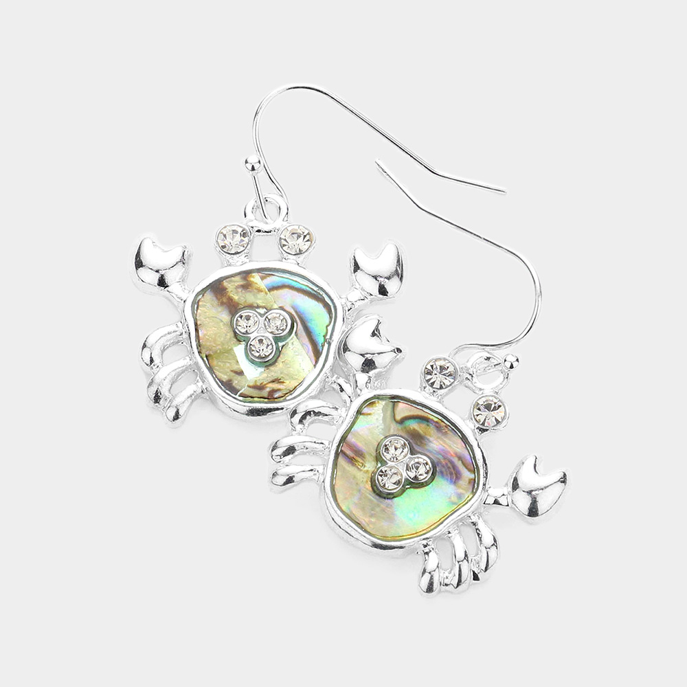 Rhinestone Embellished Abalone Crab Dangle Earrings