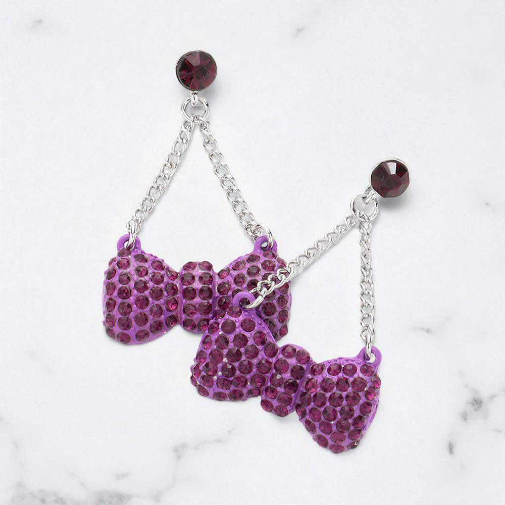 Oval Stone Accented V Shaped Rhinestone Necklace Clip on Earring Set