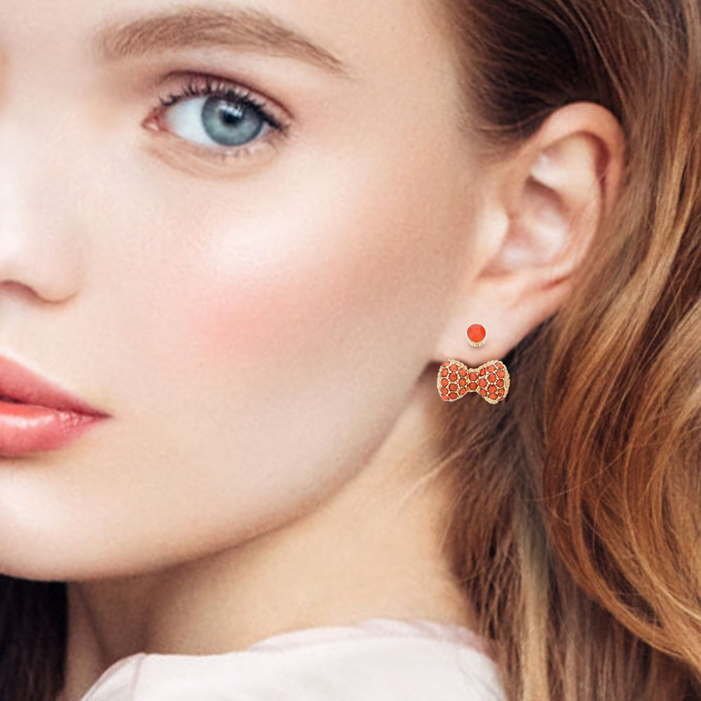 Rhinestone Embellished Bow Ear Jacket Earrings