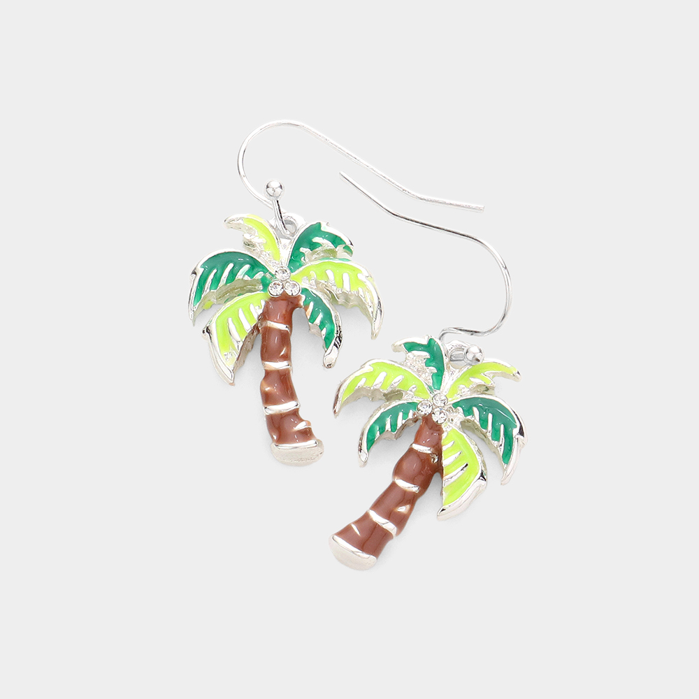 Rhinestone Embellished Enamel Palm Tree Dangle Earrings