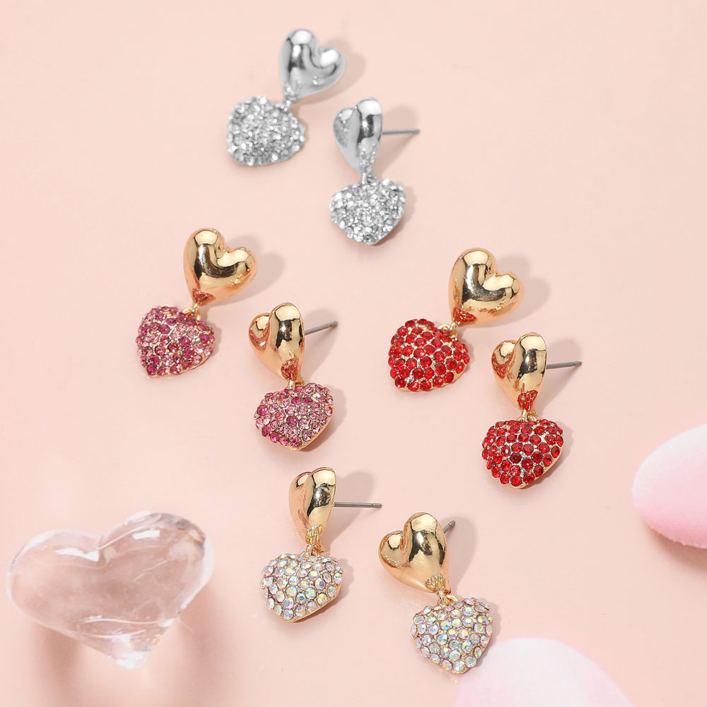 Rhinestone Embellished Heart Dangle Earrings Rhinestone Embellished Heart Dangle Earrings Rhinestone Embellished Heart Dangle Earrings