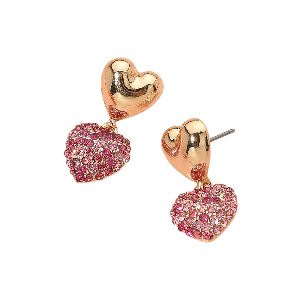 • Add a touch of romance with these sparkling double heart earrings, featuring a sleek metallic top heart and a dazzling crystal-accented lower heart. Perfect for day-to-night wear, they bring elegant charm and a playful shimmer to your style effortlessly.
