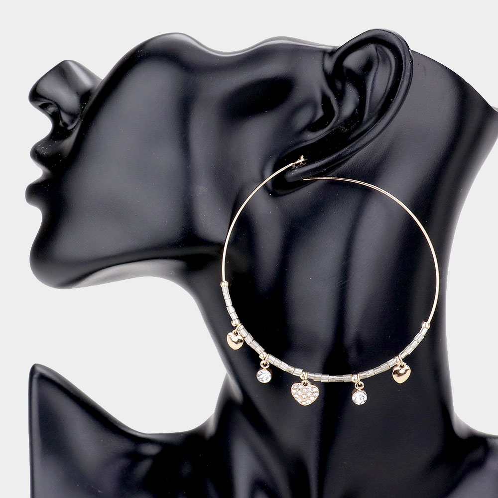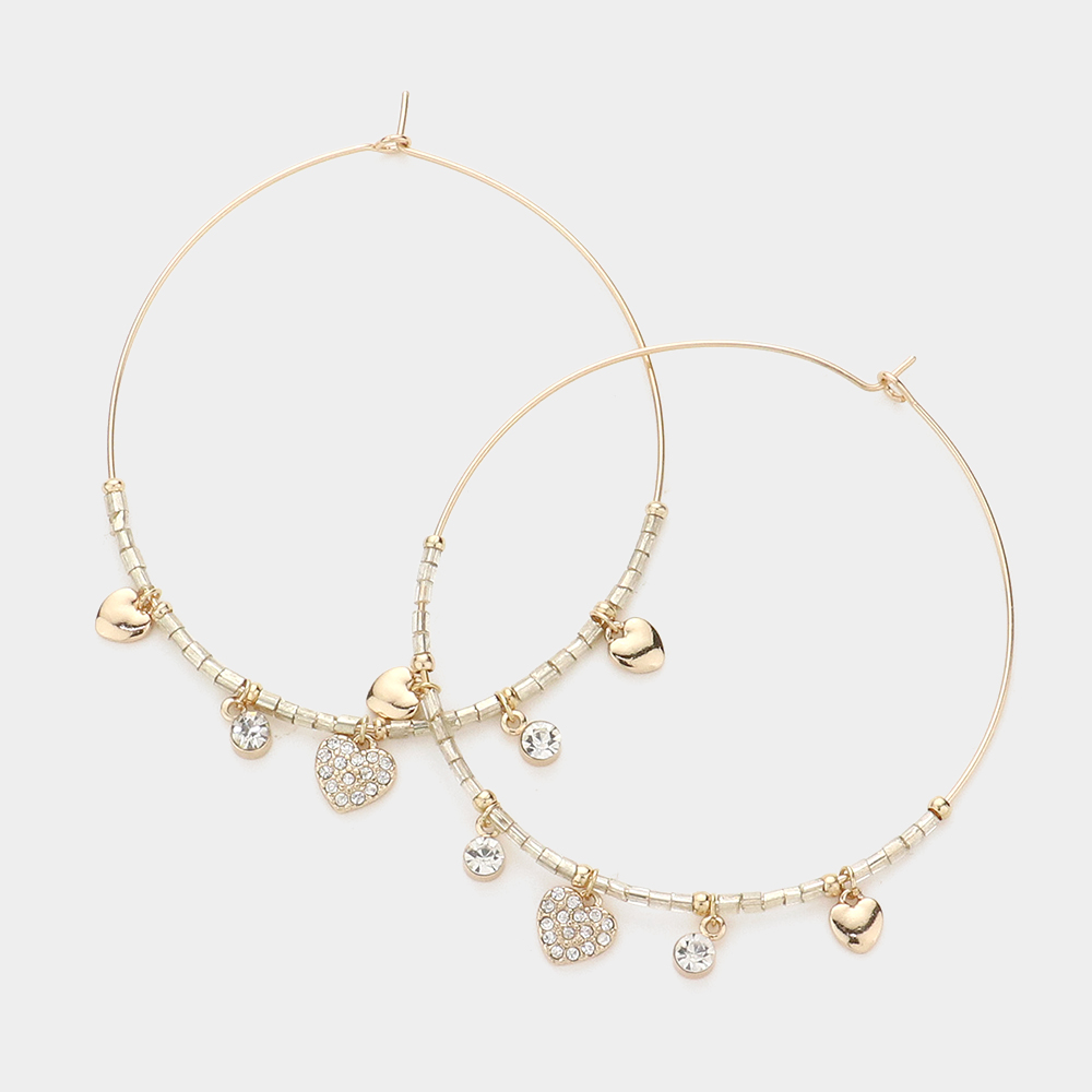 Rhinestone Embellished Metal Heart Beaded Open Circle Earrings