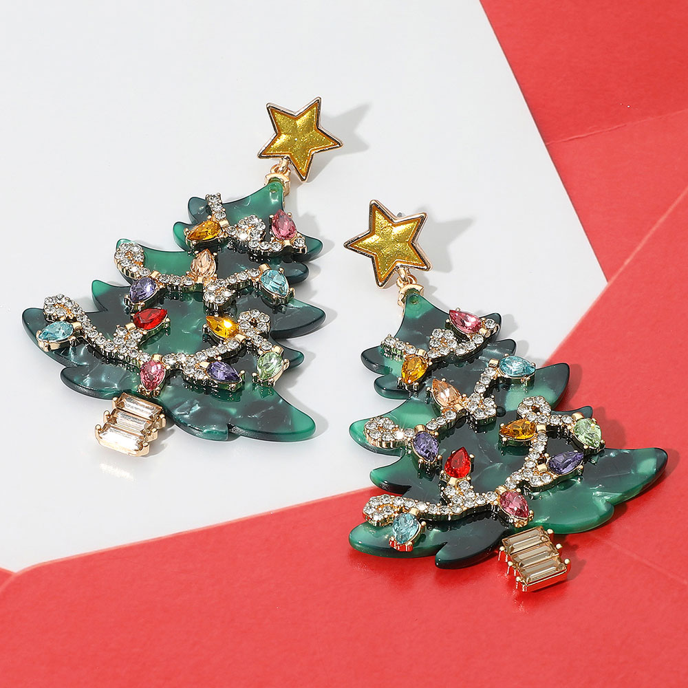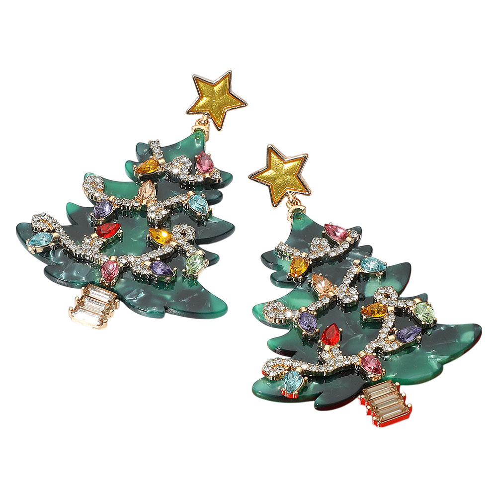 Rhinestone Embellished Resin Christmas Tree Dangle Earrings