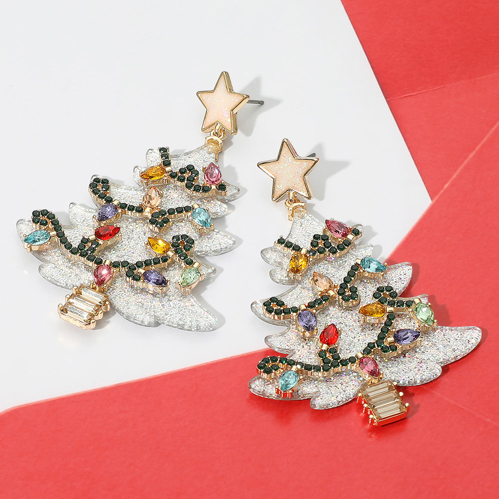 Rhinestone Embellished Resin Christmas Tree Dangle Earrings