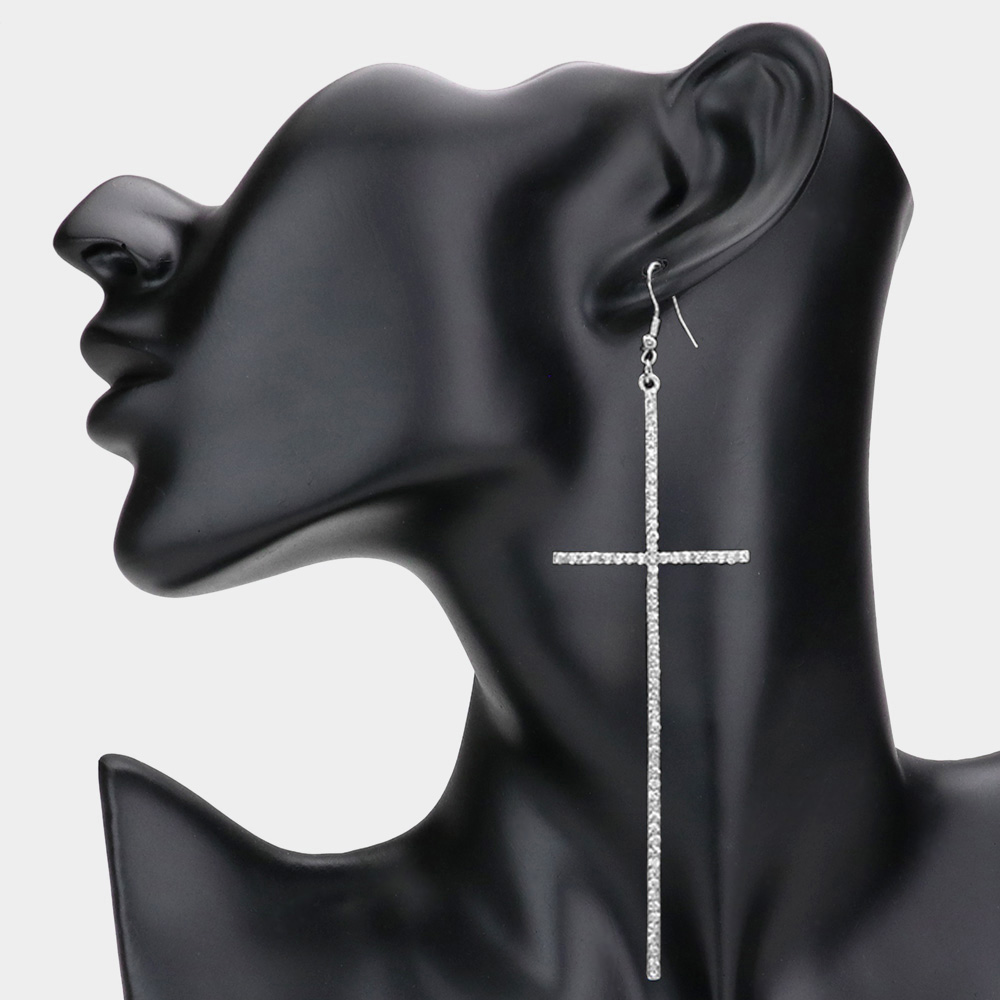 Two Tone Metal Intricate Scroll Cross Stone Cluster Charm Embellished Necklace