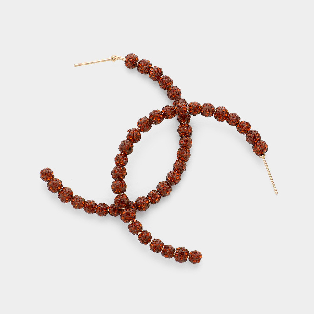 Rhinestone Pave Shamballa Ball Beaded Hoop Earrings