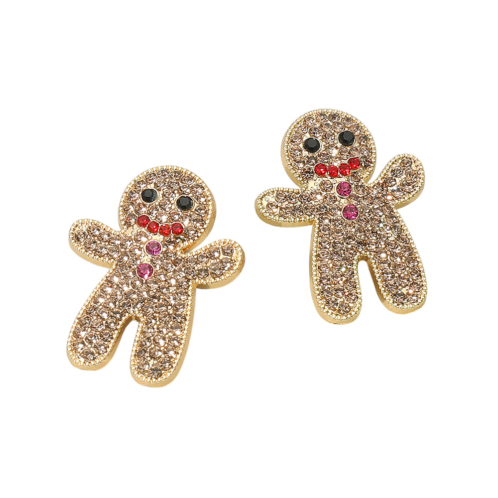 Details • Size : 1" X 1.25" • Post Back • Adorable gingerbread man stud earrings adorned with shimmering accents for a playful festive touch. Perfect for holiday parties, seasonal celebrations, or adding a whimsical element to everyday outfits. A fun and cheerful accessory that spreads holiday joy while enhancing your jewelry collection. • Lead and Nickel Compliant