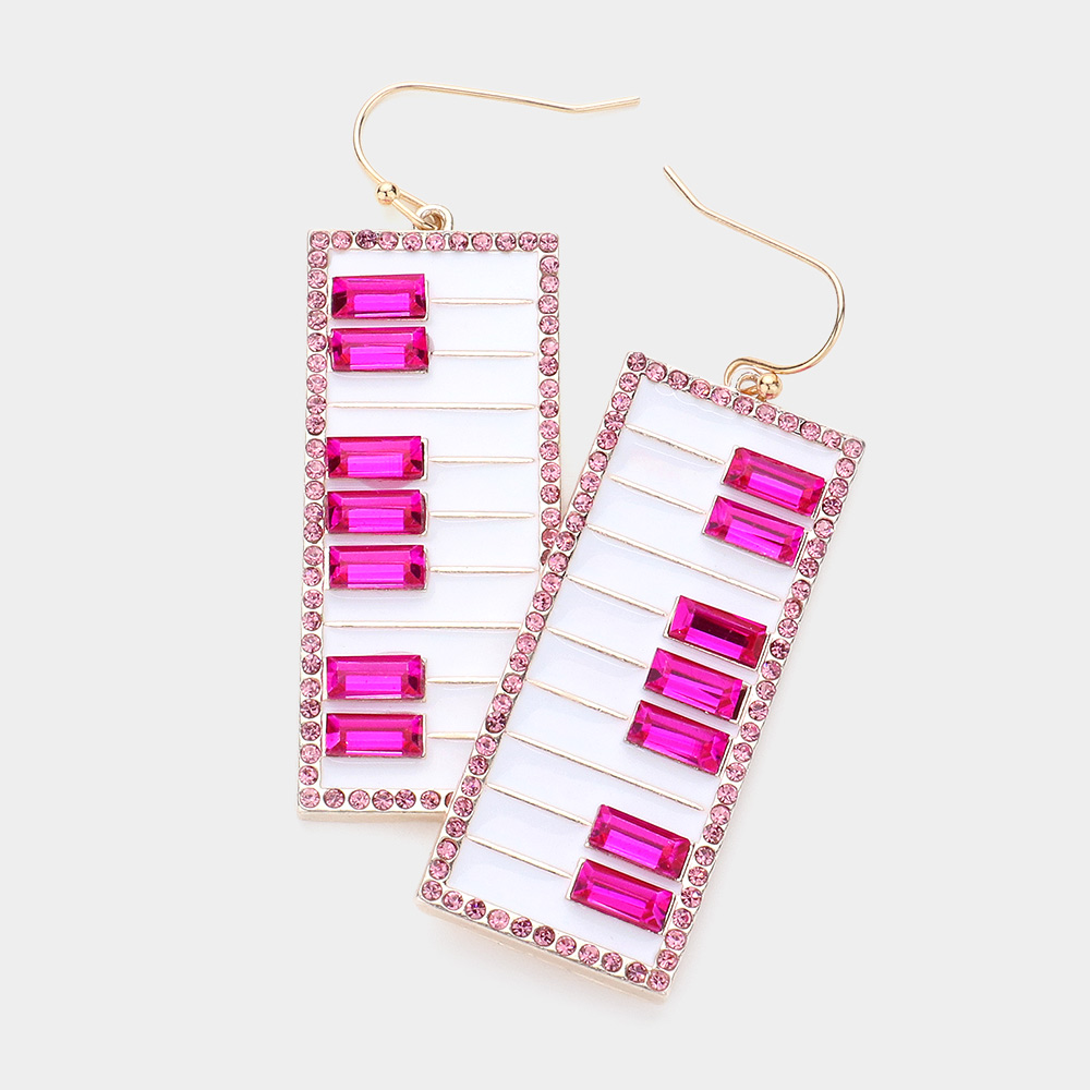 Rhinestone Rim Piano Keyboard Dangle Earrings