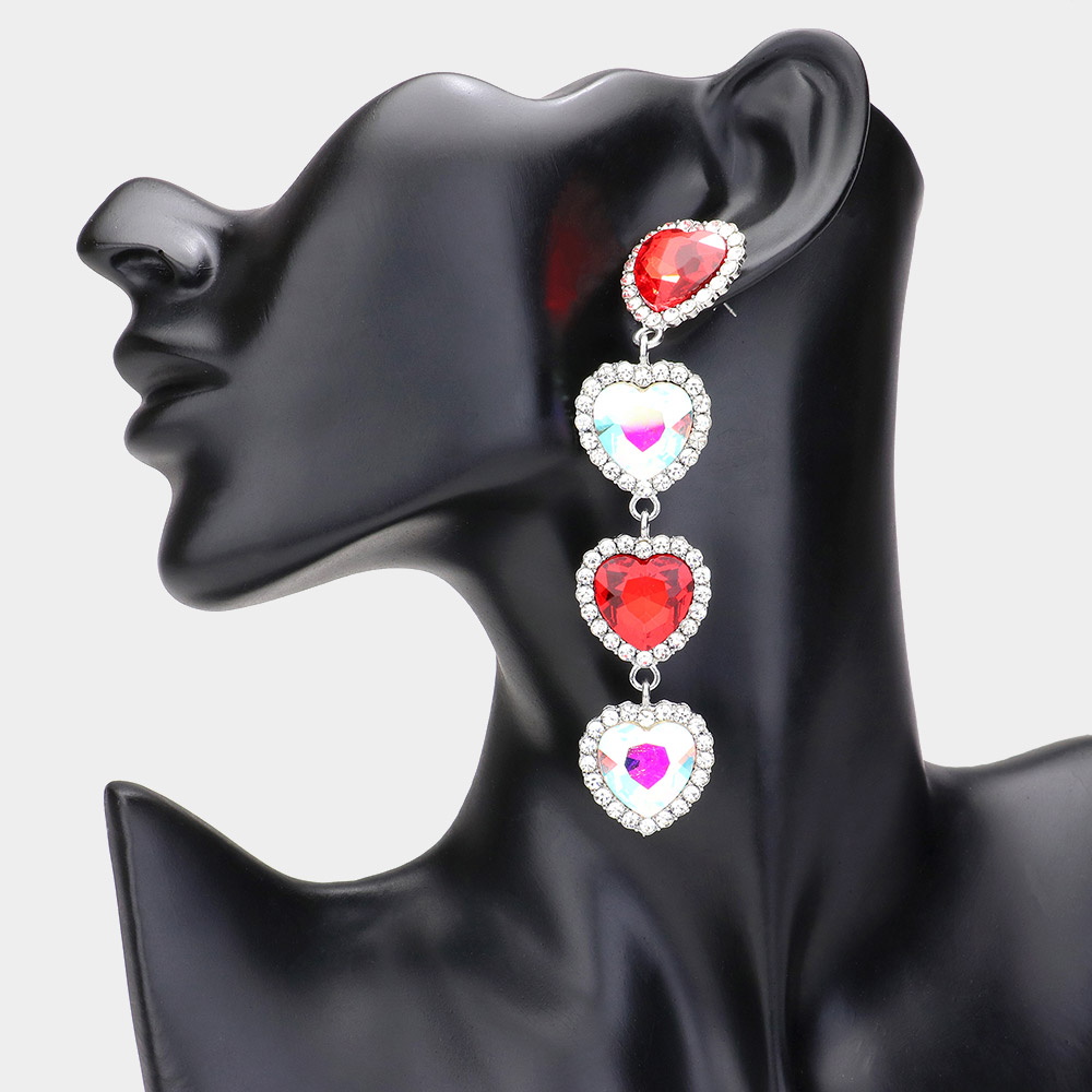 Rhinestone Trim Heart Stone Link Dangle Earrings