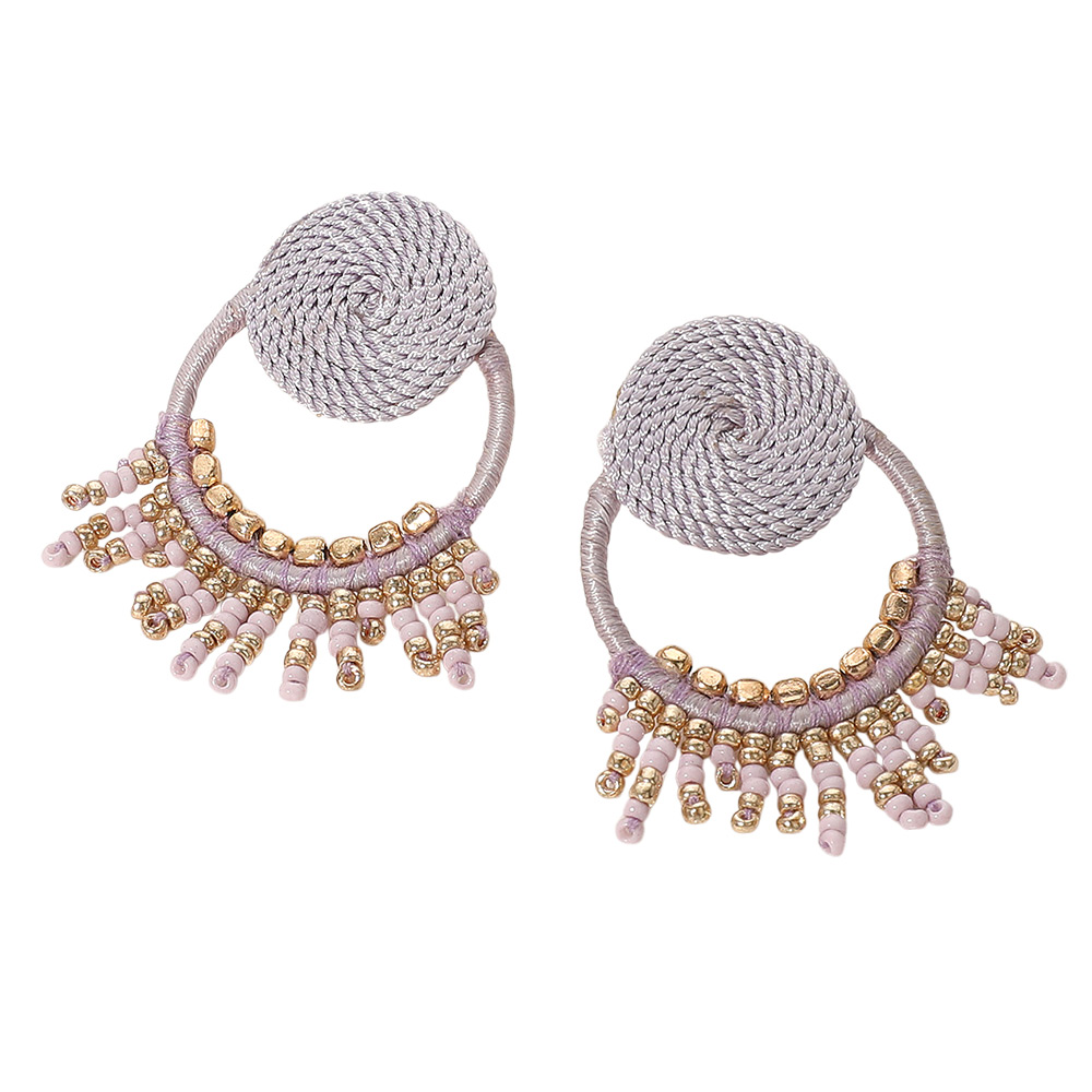 Rope Wrapped Beaded Fringe Open Circle Earrings Rope Wrapped Beaded Fringe Open Circle Earrings