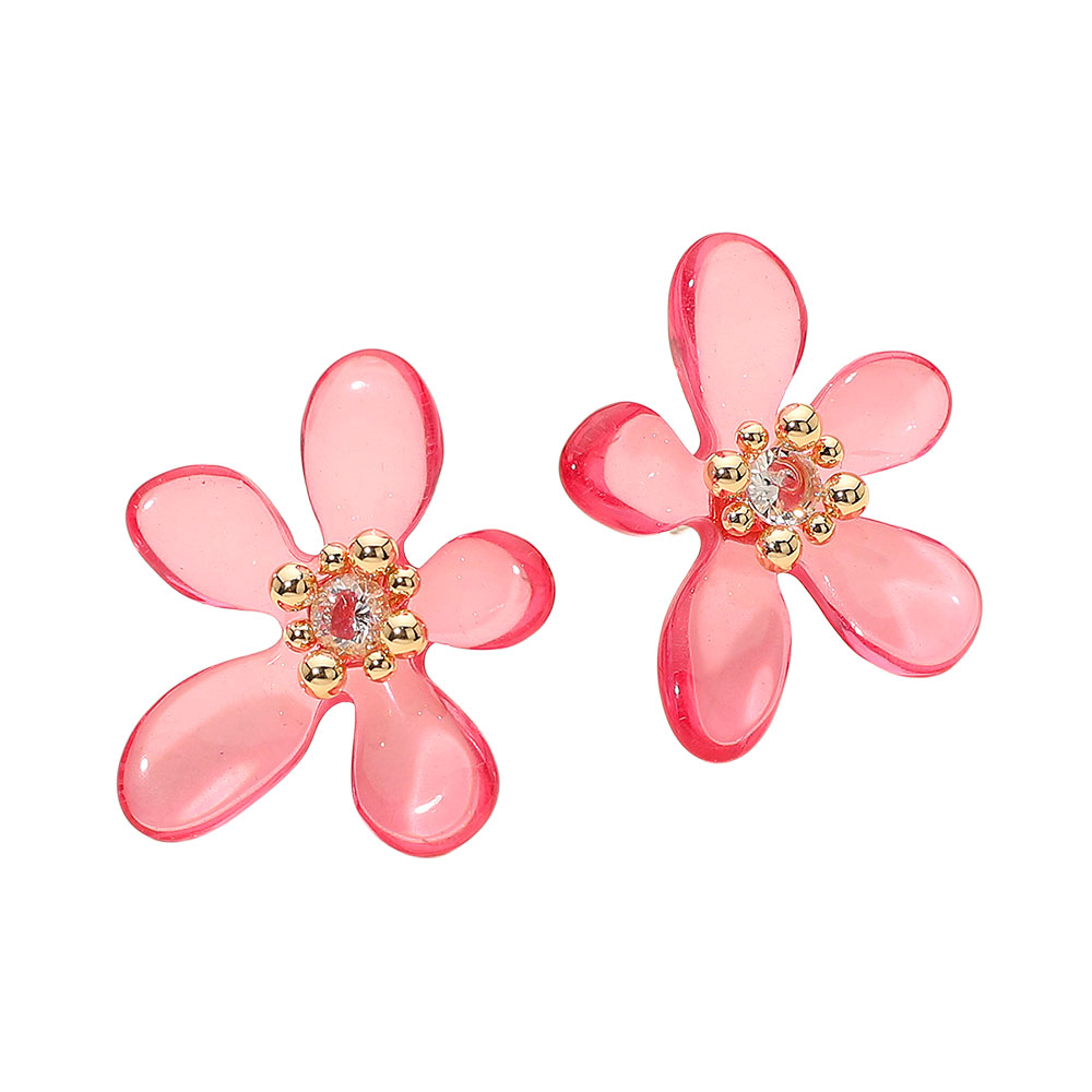 Round Center Stone Accent Transparent Resin Petal Flower Earrings Round Center Stone Accent Transparent Resin Petal Flower Earrings