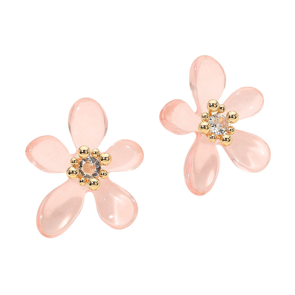 Round Center Stone Accent Transparent Resin Petal Flower Earrings Round Center Stone Accent Transparent Resin Petal Flower Earrings