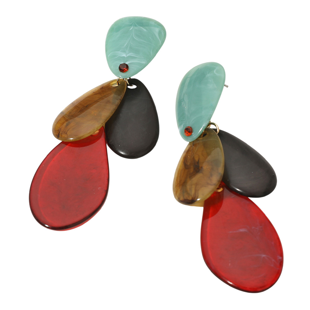 Round Stone Accented Abstract Resin Teardrop Drop Earrings