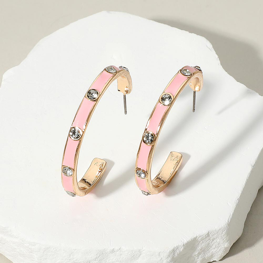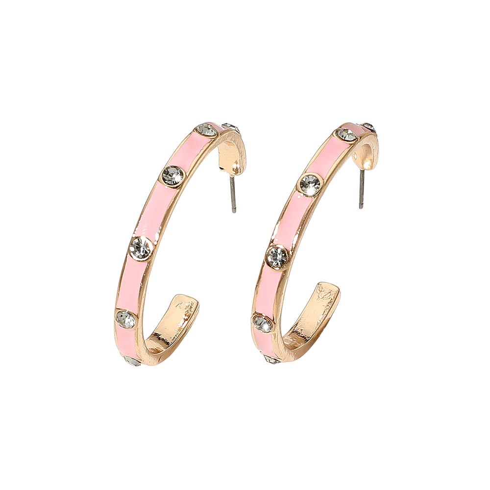Stone Paved Pink Ribbon Enamel Afro Woman Earrings