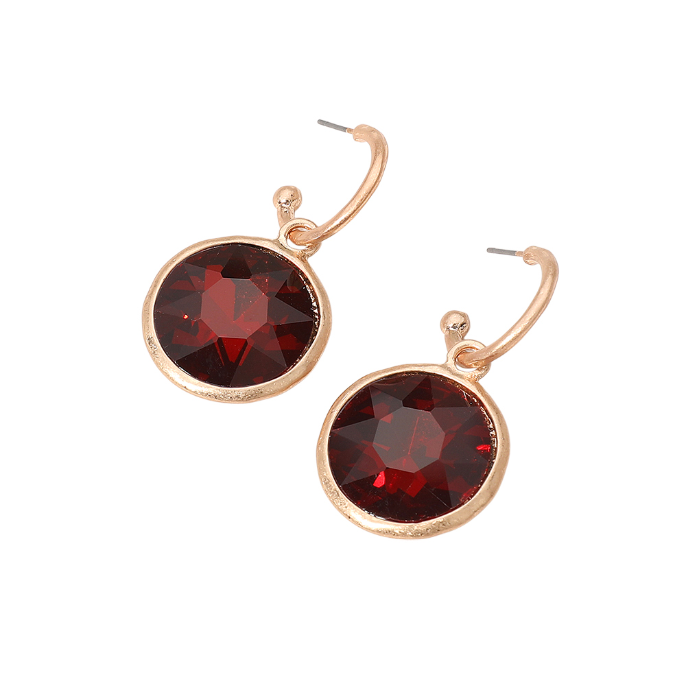 • Add a refined sparkle to your style with these Round Faceted Stone Drop Hoop Earrings. Featuring a stunning faceted stone set in a sleek round frame, these earrings offer timeless charm and elegance, perfect for both everyday wear and evening occasions.