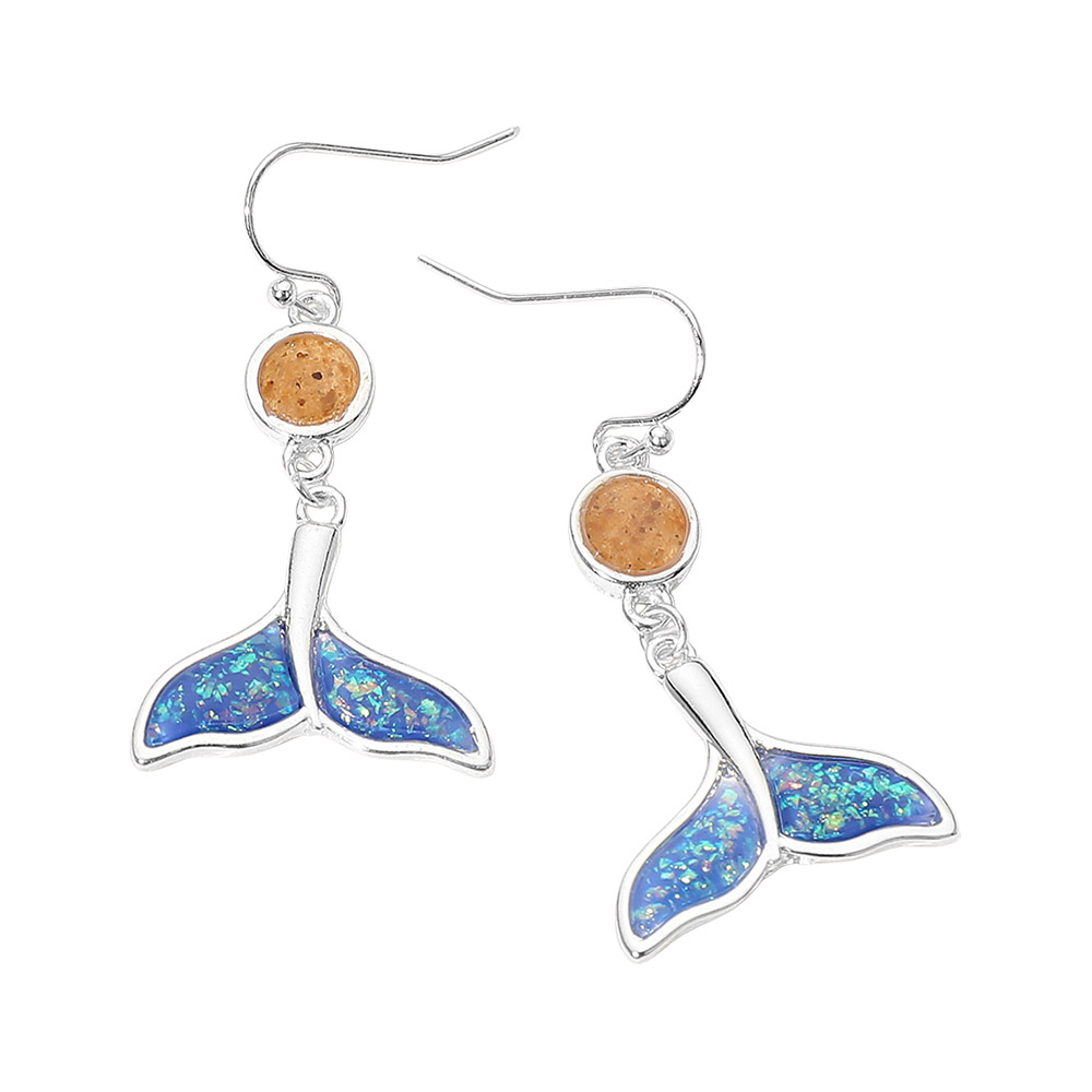 Details • Size : 0.8" X 1.7" • Fish Hook Back • Ocean inspired whale tail charm drop earrings designed with playful movement and a coastal theme. A fun statement accessory ideal for summer outfits, beach vacations, seaside boutiques, and gift assortments, offering eye catching detail and seasonal appeal without overpowering everyday looks. • Lead and Nickel Compliant