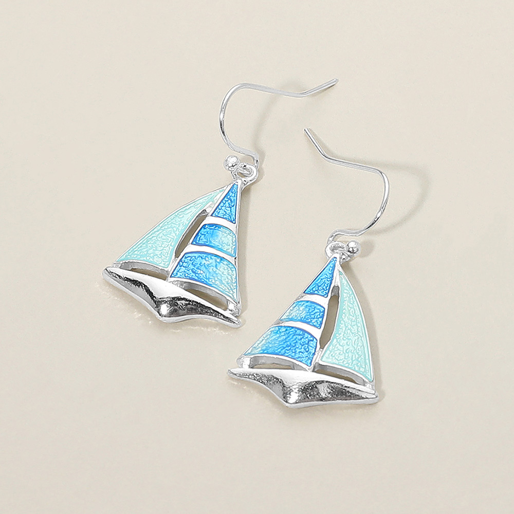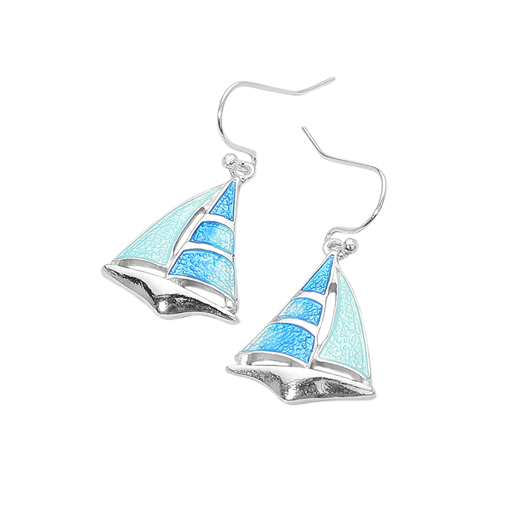• Charming sailboat-shaped dangle earrings designed to evoke coastal adventures and relaxed seaside style. A playful yet wearable accessory ideal for beach boutiques, resort gift shops, summer collections, nautical-themed assortments, and vacation-inspired jewelry displays.