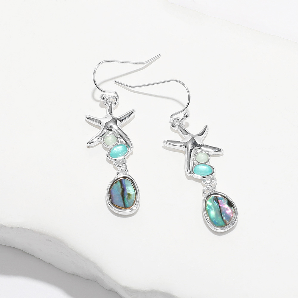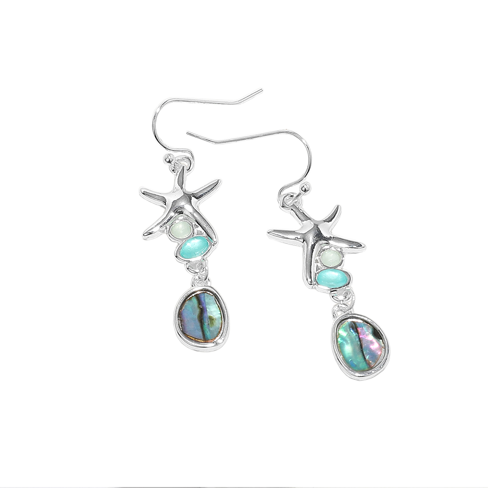 Sea Glass Abalone Starfish Link Dropdown Dangle Earrings