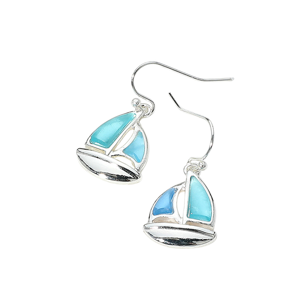 Sea Glass Boat Dangle Earrings