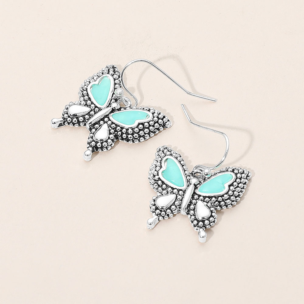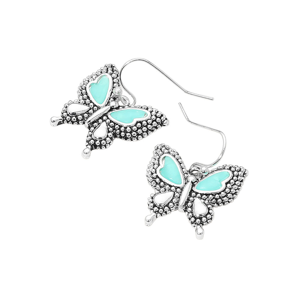 Rhinestone Embellished Metal Butterfly Beaded Open Circle Earrings