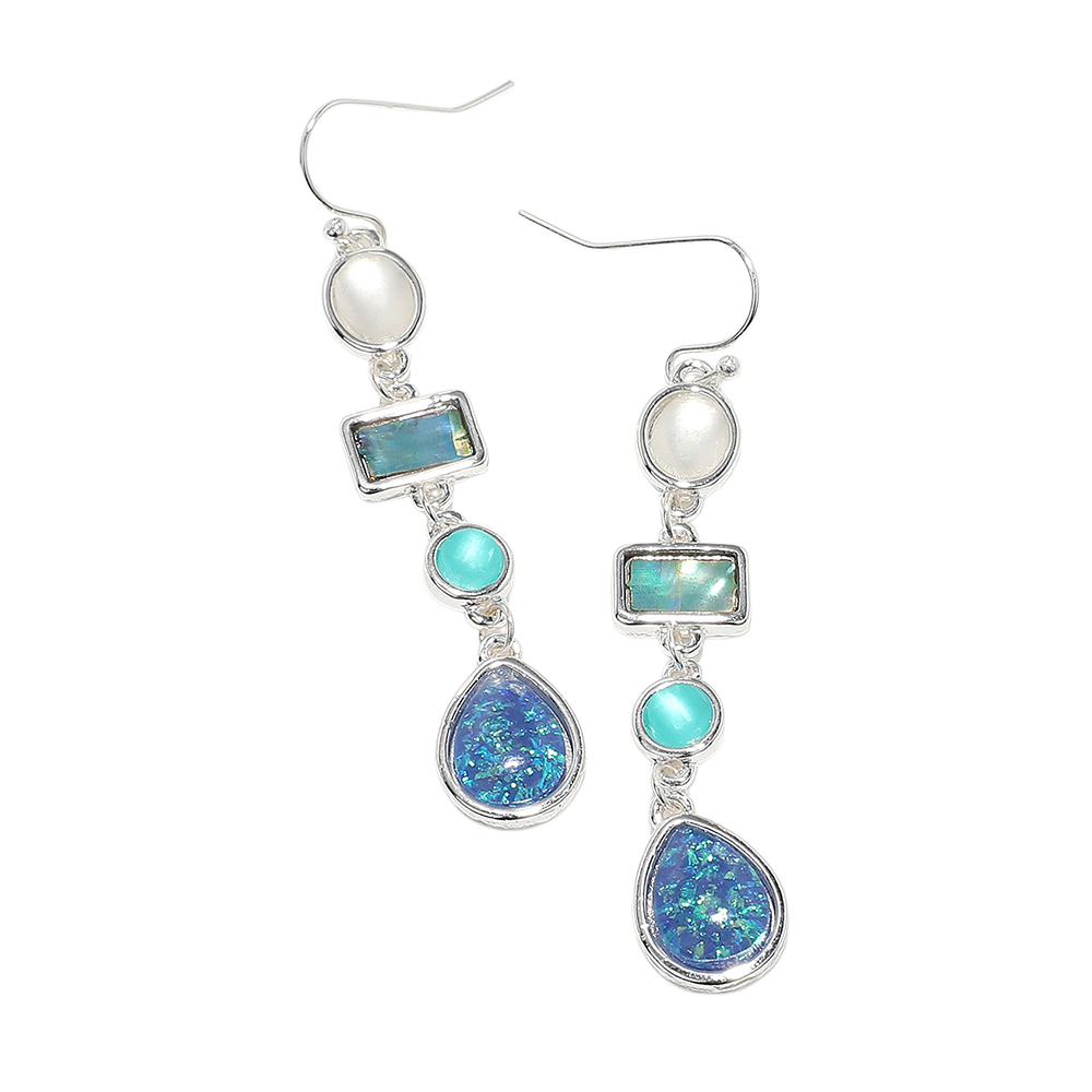 Abalone Pointed Embossed Open Metal Teardrop Dangle Earrings