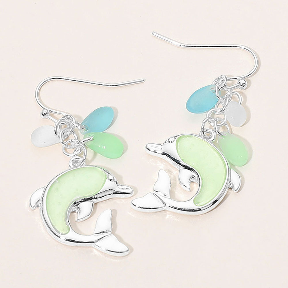 Sea Glass Dolphin Drop Dangle Earrings Sea Glass Dolphin Drop Dangle Earrings
