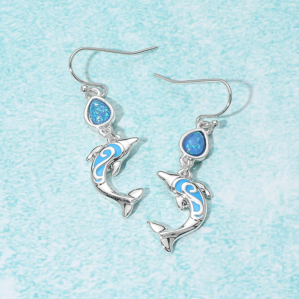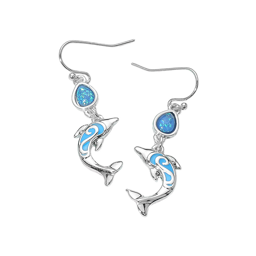 Details • Size : 0.5" X 1.75" • Fish Hook Back • Playful dolphin earrings with intricate swirl accents and ocean-themed charm. Lightweight dangle design perfect for beach lovers or nautical fashion. A fun, expressive piece for everyday or vacation wear. • Lead and Nickel Compliant