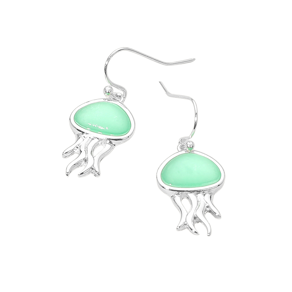 Details • Size : 0.75" X 1.3" • Fish Hook Back • Whimsical jellyfish dangle earrings featuring a smooth domed center and flowing tentacle details. Designed with lightweight movement and a classic hook style, these earrings add playful charm to summer looks, beach themes, coastal boutiques, resort wear collections, and gift-ready accessory assortments. • Lead and Nickel Compliant