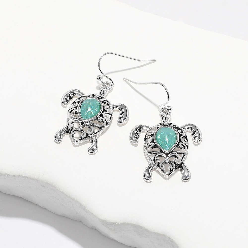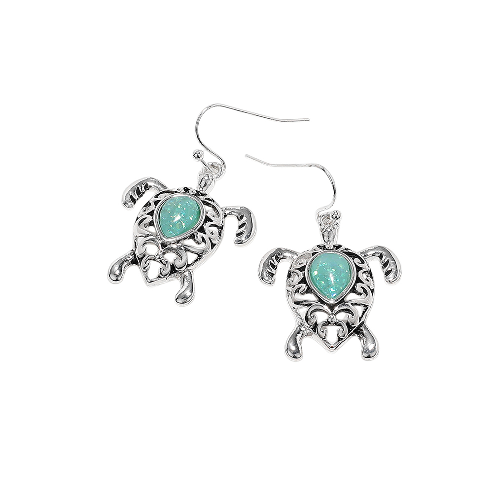Sea Glass Pointed Metal Turtle Dangle Earrings