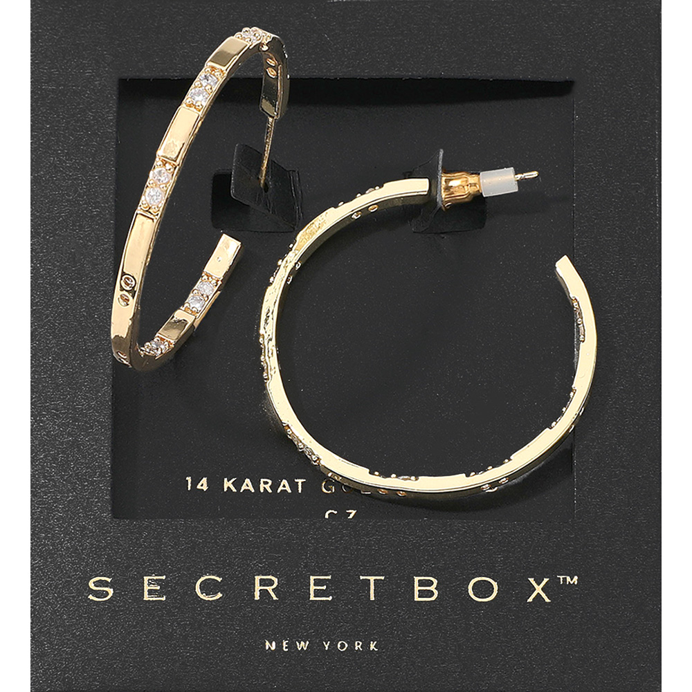 SECRET BOX_14K Gold Dipped CZ Stone Paved Hoop Earrings