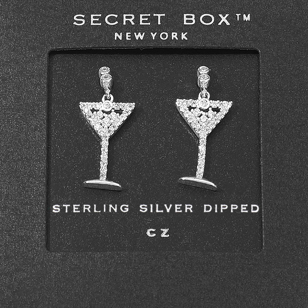 SECRET BOX_Sterling Silver Dipped CZ Stone Paved Cocktail Glass Dangle Earrings