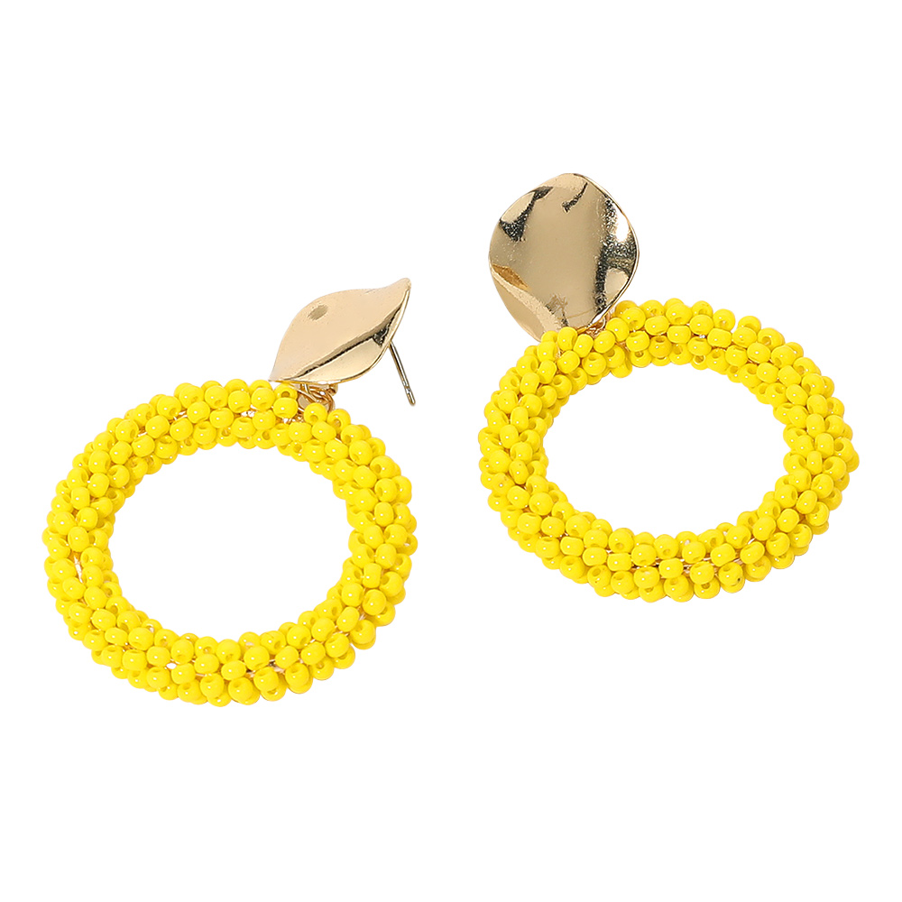 Details • Size : 1.4" X 1.9" • Post Back • Stylish beaded hoop earrings featuring a smooth metal stud top and textured round drop. Lightweight and perfect for adding a fun, artistic touch to everyday or vacation looks. A unique accessory for modern bohemian style lovers. • Lead and Nickel Compliant