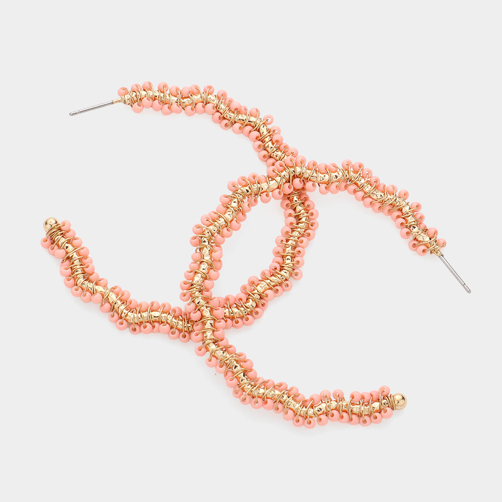Seed Bead Wrapped Wavy Hoop Earrings