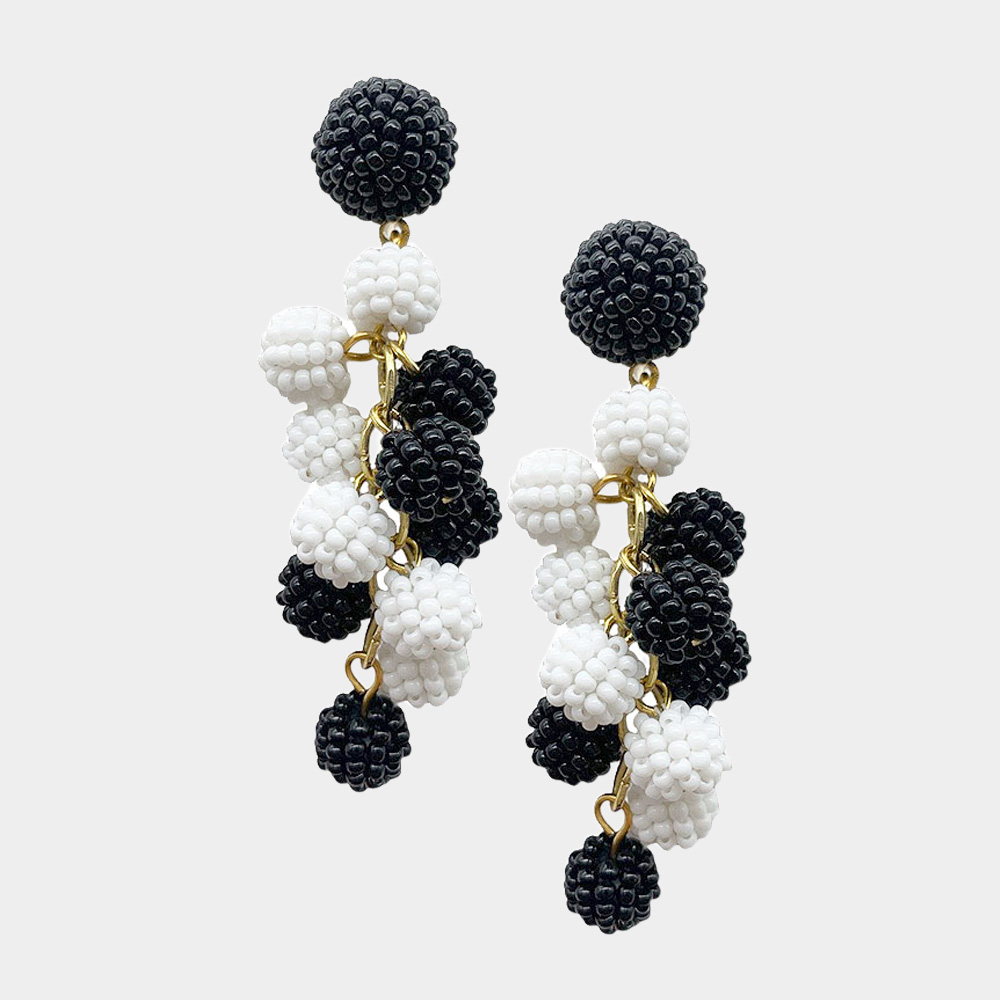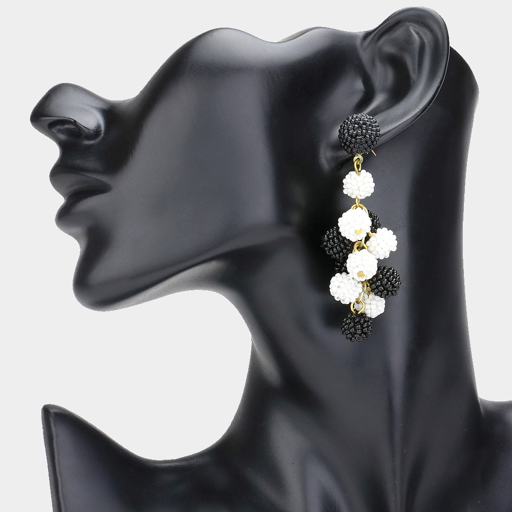 Seed Beaded Ball Cluster Vine Dangle Earrings