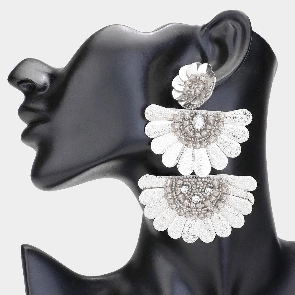 Pressed Flower Lucite Teardrop Tassel Dangle Earrings