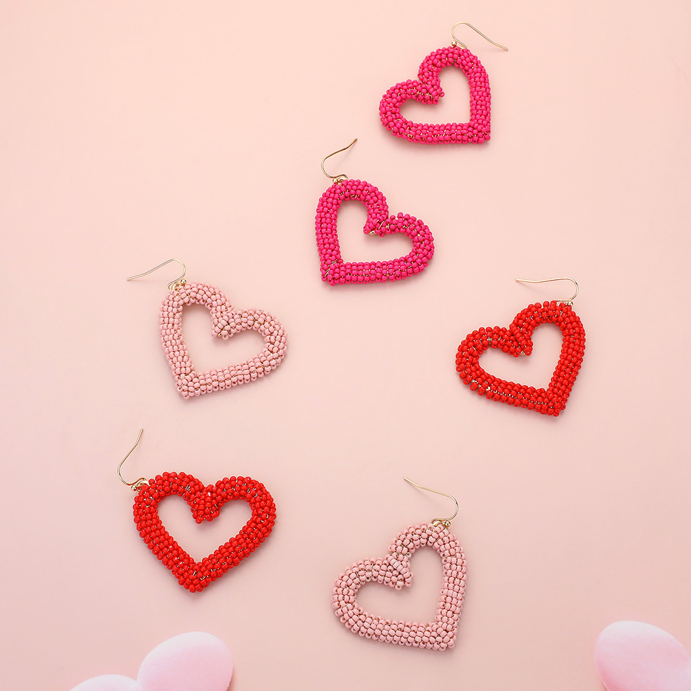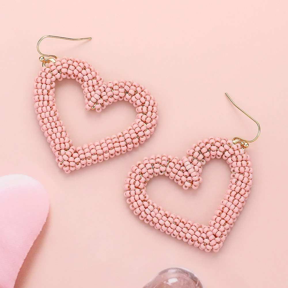 Hammered Metal Double Open Heart Layered Dangle Earrings