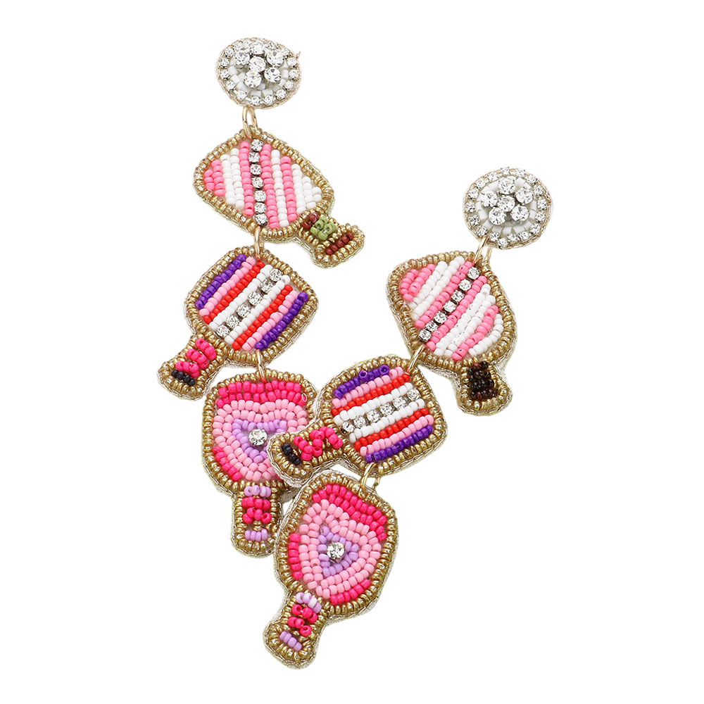 Seed Beaded Pickleball Paddle Link Dropdown Dangle Earrings