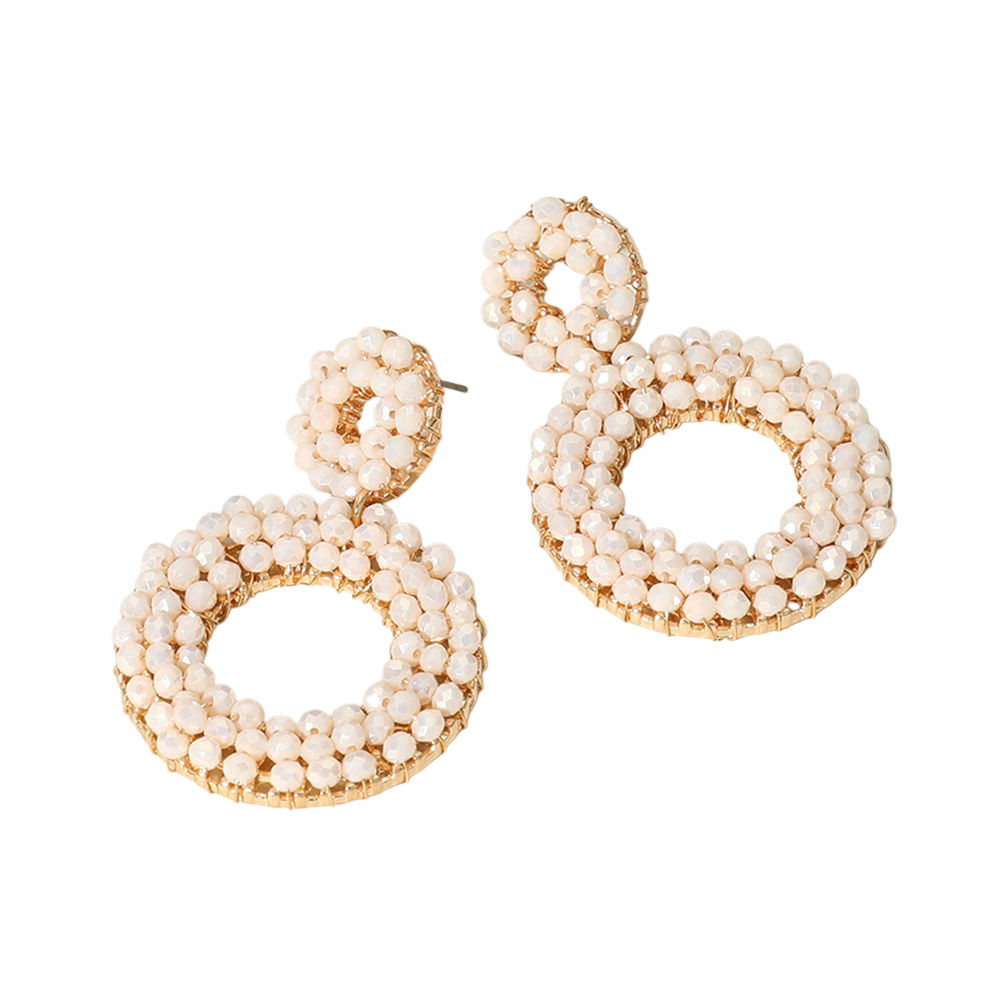 Metal Beaded Open Circle Dangle Earrings