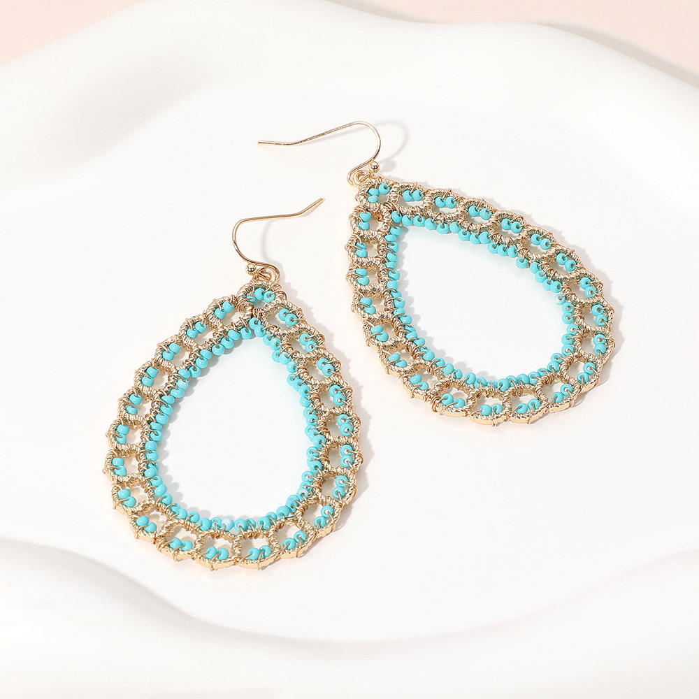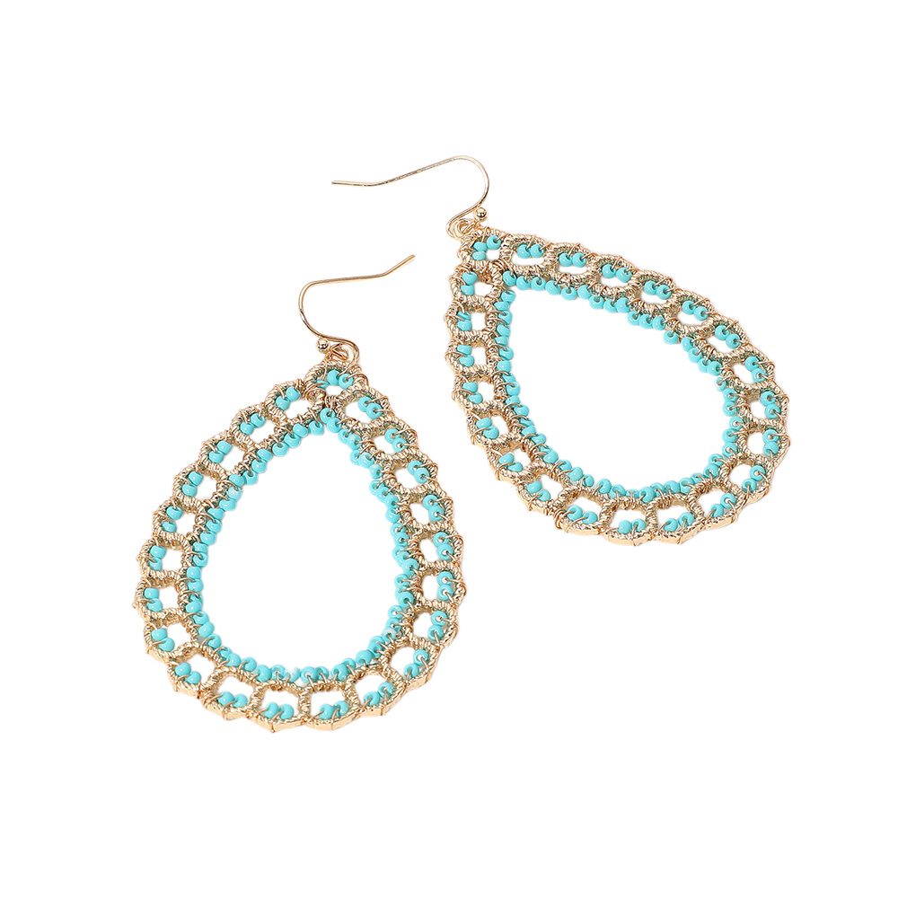 Seed Beaded Wrapped Open Teardrop Dangle Earrings