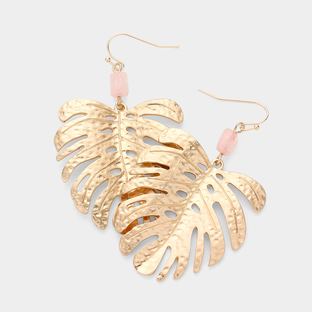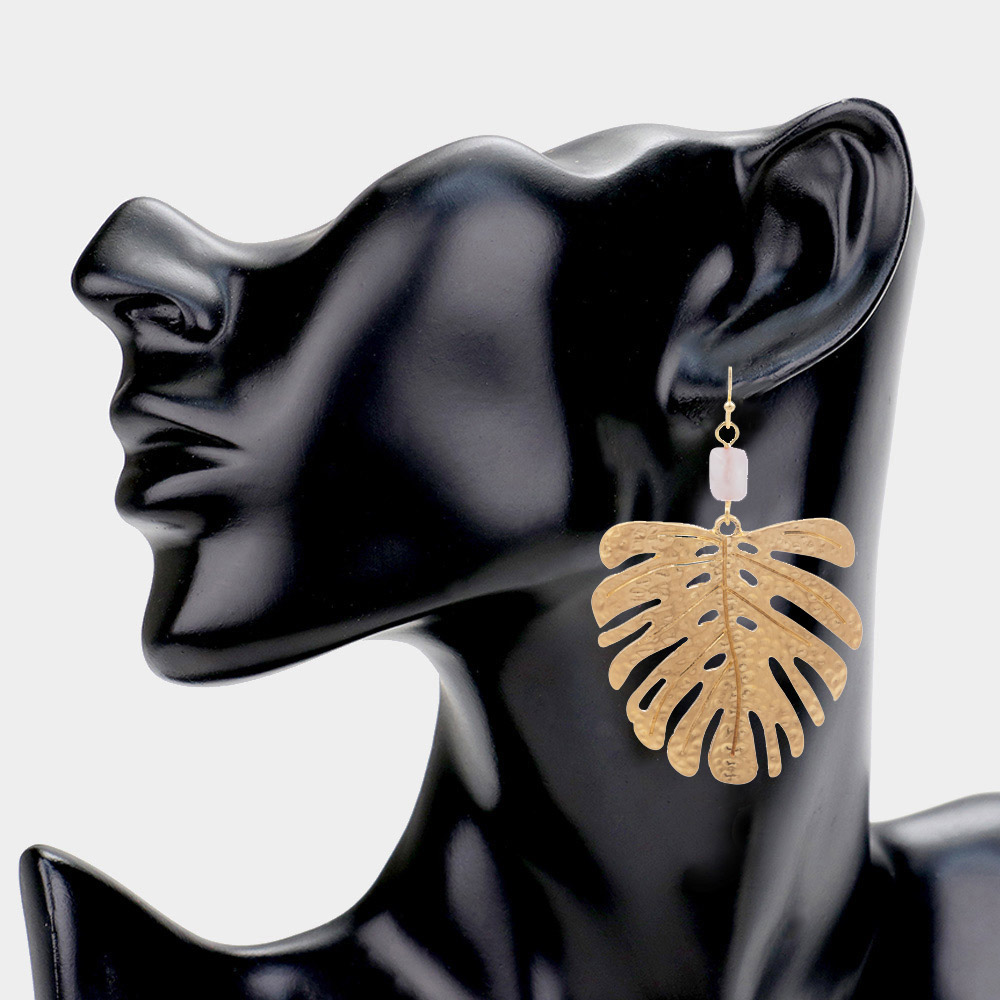 Semi Precious Metal Tropical Leaf Link Dangle Earrings