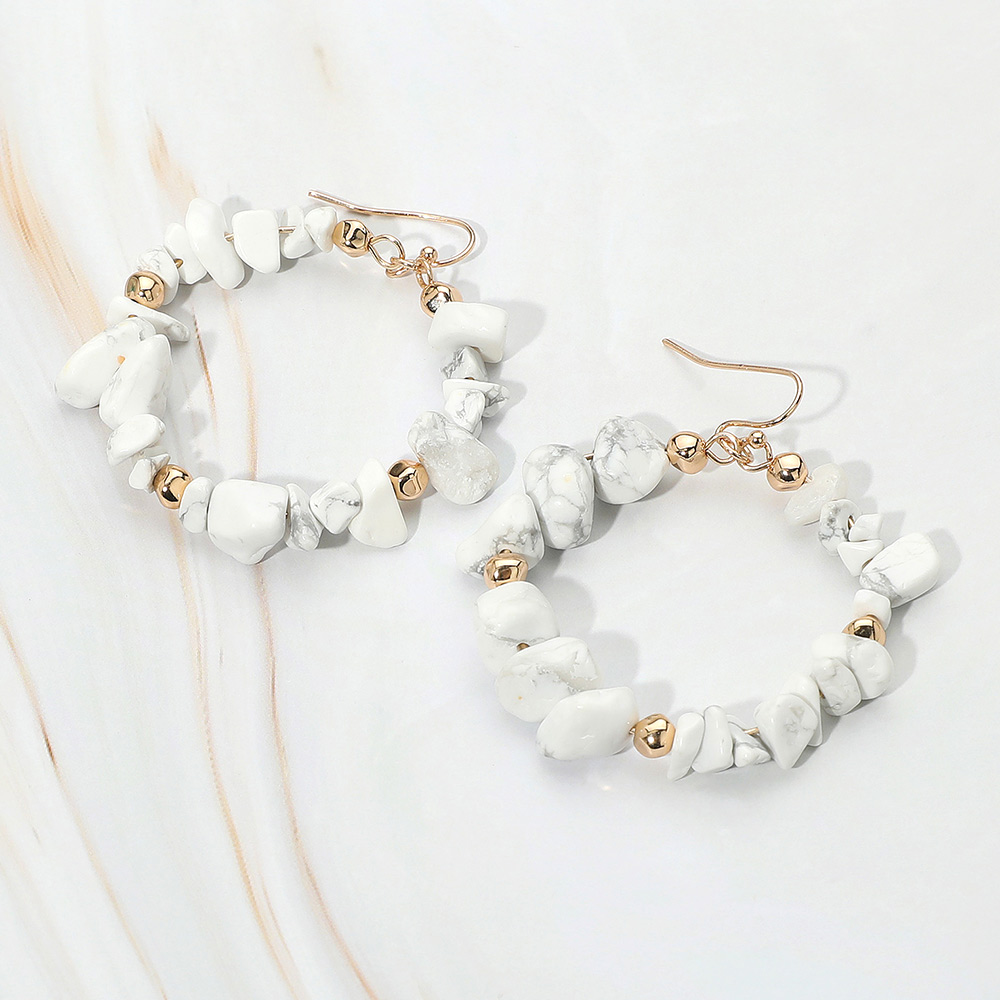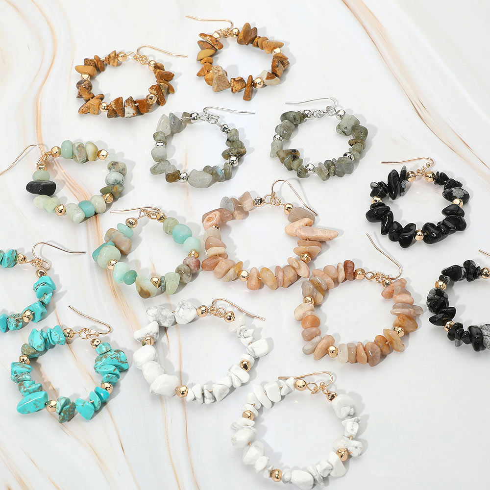 Semi Precious Natural Stone Beaded Ring Dangle Earrings